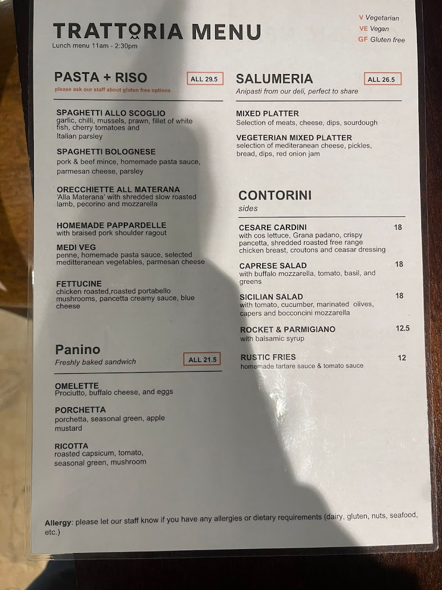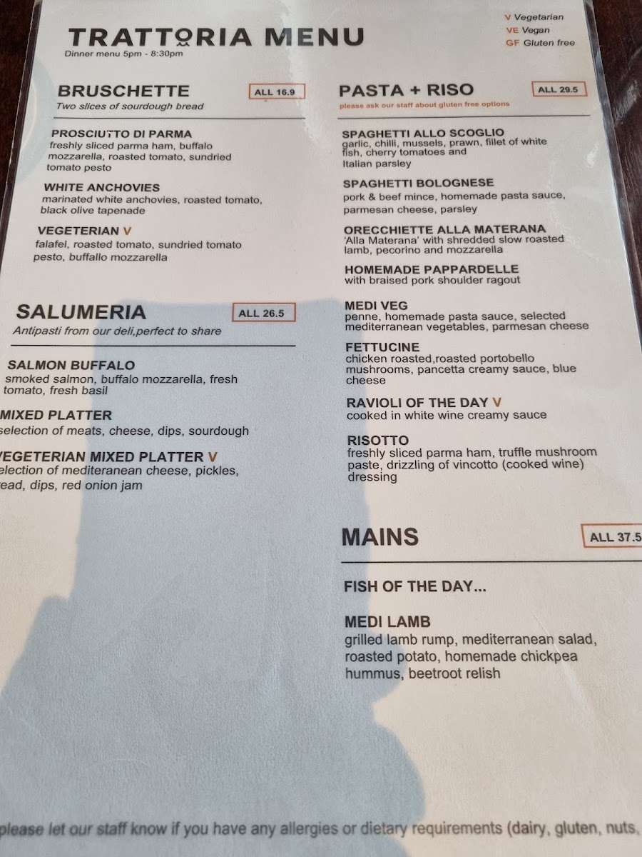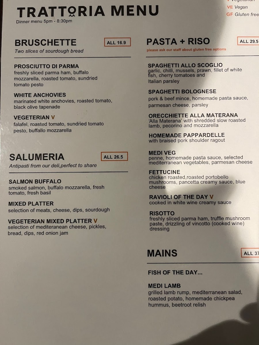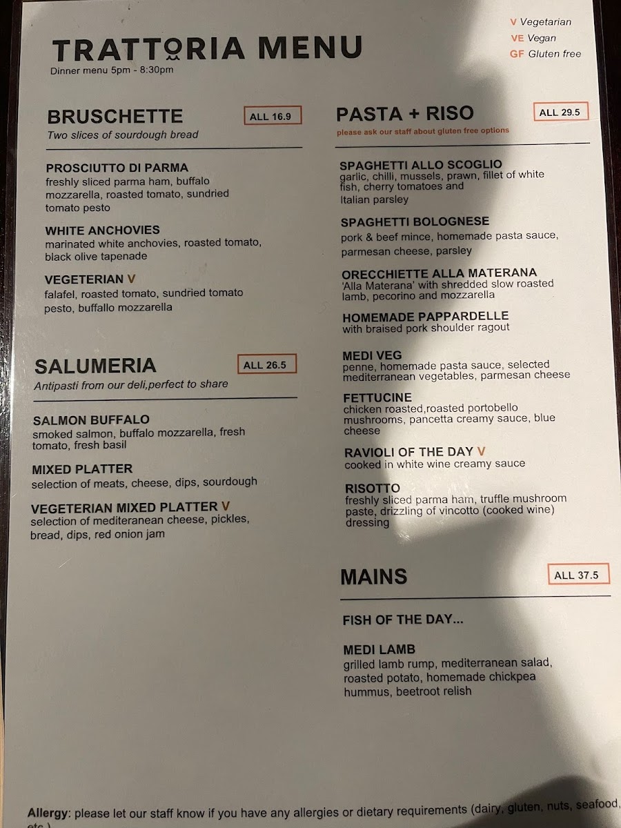 Mediterranean Foods Trattoria & Deli, Kapiti Menu